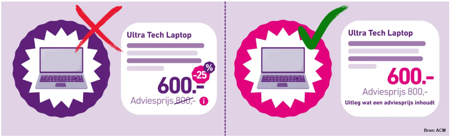 In de ‘Leidraad prijsweergave en -vergelijkingen’ van de ACM vind je meer voorbeelden en uitleg over de regels. Download deze hier.